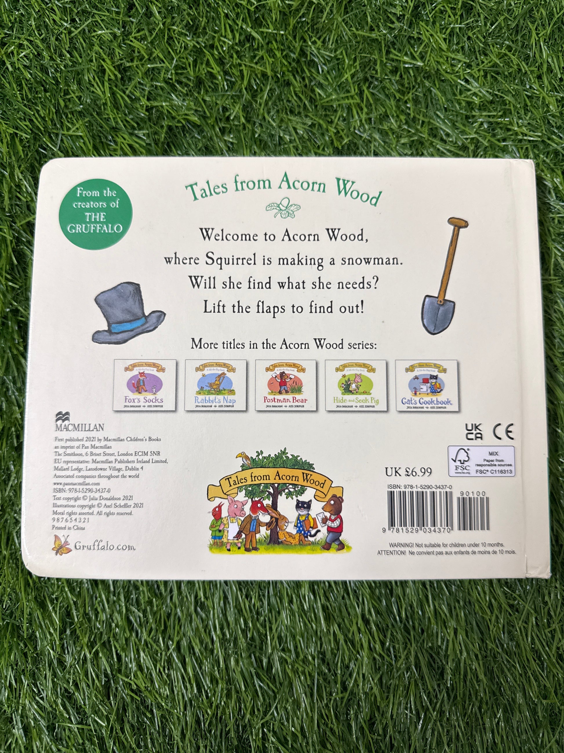 Welcome to Acorn wood. Come and help squirrel build a snowman in this preschool lift-the-flap book from the creators of the buffalo lift the flaps and join in the fun with squirrel's snowman, a new story in the tales from Acorn wood preschool series by Julia Donaldson and Axel Scheffler, creators of the buffalo. It's snowing, and squirrel wants to build a snowman. Will she and her friend Mole find what they need around the house? Lift the flaps to find out! With sturdy flaps on every spread and rhyming stories that are a joy to read aloud, squirrel's snowman joins the first four stories in the tales from Acorn wood series - fox's Socks, postman bear, rabbit's nap and hide-and-seek pig - which have been delighting parents and children for over twenty years.
